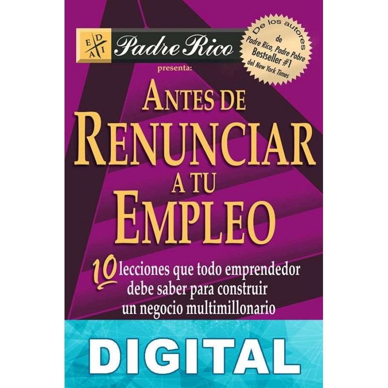 Una de las claves para alcanzar el éxito empresarial es tomar la decisión correcta en el momento oportuno. Sin embargo, resulta aún más importante el aprendizaje que obtenemos de nuestros errores cuando tomamos decisiones equivocadas. «El trabajo del empresario consiste en cometer errores. El trabajo del empleado consiste en no cometer errores», dice el autor de este libro.En Antes de renunciar a tu empleo Kiyosaki nos comparte sus éxitos, sus errores y las lecciones que ha aprendido. Habla de los puntos que debes cuidar antes de dar el gran paso de empleado a empresario, así como estrategias para recuperarte de un fracaso financiero. Cada capítulo corresponde a una lección y está acompañado de las excelentes reflexiones de Sharon Lechter a manera de resumen.