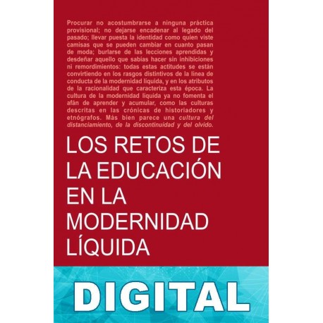 Hay pocos textos que sinteticen con mayor lucidez la condición del individuo en la sociedad de consumo del siglo XXI que estas páginas escritas por Zygmunt Bauman. En ellas se delimitan con precisión los contornos de un estado de cosas en el que los individuos, convertidos en consumidores, han perdido contacto con todas las referencias ideológicas, sociales y de comportamiento que habían determinado su actuación en siglos anteriores. En este orden nuevo la vida «se acelera» por la necesidad, casi obligación, de aprovechar tantas oportunidades de felicidad como sea posible, cosa que nos permite ser «alguien nuevo» a cada momento. La identidad se construye por medio de accesorios comprados, que aparecen en el mercado en número que se multiplica hasta hacerse incontrolable, al igual que la oferta de información con que nuestro criterio es bombardeado desde todas partes. Ello tiene influencia sobre nuestra manera de relacionarnos con el saber, el trabajo y la vida en general: la educación, en la época de la modernidad líquida, ha abandonado la noción de conocimiento de la verdad útil para toda la vida y la ha sustituido por la del conocimiento «de usar y tirar», válido mientras no se diga lo contrario y de utilidad pasajera. Sin embargo, para Bauman, la formación continuada no debería dedicarse exclusivamente al fomento de las habilidades técnicas y a la educación centrada en el trabajo, sino, sobre todo, a formar ciudadanos que recuperen el espacio público de diálogo y sus derechos democráticos, pues un ciudadano ignorante de las circunstancias políticas y sociales en las que vive será totalmente incapaz de controlar el futuro de éstas y el suyo propio.