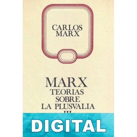 Las Teorías de la plusvalía forman parte del extenso manuscrito preparatorio de El Capital de 1861-1863. Es el segundo proyecto que sigue a los Grundrisse y previo a la publicación del primer tomo del libro definitivo.Este segundo proyecto consta de 23 cuadernos. La mayor parte, alrededor de 12 cuadernos y bastante parte de algunos de los restantes, constituyen las llamadasTeorías de la plusvalía. La intención de Marx, expresada en la carta a Kugelmann de 28 de Dic. 1862, es la de escribir una obra que se titularía «Crítica de la economía política» en la que las Teorías de la plusvalía constituirían el tomo IV y contendrían la parte histórica, o histórico-crítica; es decir, la destinada a exponer la historia de las doctrinas en torno a su teoría fundamental. Estaría situada al final ya que los principales argumentos teóricos estarían desarrollados y explicados en los tomos precedentes. Está parte, bastante elaborada para ser un manuscrito preparatorio, constituyen el primer y único proyecto sobre la historia de las diferentes posiciones históricas sobre el tema de la plusvalía aunque trata además de otros aspectos teórico-históricos.El trabajo de edición de esta parte del Manuscrito fue encargado por Engels a Kautsky. Éste no sólo ignoró y alteró el orden prefijado por Marx en sus índices, sino que suprimió o reelaboró aquellas partes que le pareció oportuno o consideraba inadecuadas (entre ellas las más importantes posiciones teóricas de Marx).En vista de la falseada edición de Kautsky, el Instituto de Marxismo-Leninismo de la URRS se planteó la reedición de las Teorías de la plusvalía manteniendo la fidelidad al original y publicando tres volúmenes sucesivamente a partir de 1956. Véase el prólogo introductorio del volumen I.Este tercer volumen trata sobre Malthus, disolución de la escuela ricardiana, Ramsay, Cherbuliez, R. Jones y finaliza con un extenso apéndice titulado «El ingreso y sus fuentes».